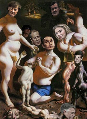 По еще одной версии, Путин погиб, когда колонна автомобилей, в одном из которых он пытался уехать из Смольного, была атакована авиацией НАТО. Кроме того, сообщается о гибели Дмитрия Медведева – бывшего нанопрезидента Российской Федерации в правительстве Путина, а также об аресте всех ключевых министров-воров бывшей РФ. Ранее 20 октября объединенные войска НАТО взяли Санк Путинбург, подвергнув его массированным ковровым бомбардировкам, который оставался последним оплотом сторонников бывшего русского диктатора. Сразу после этого сначала русские, а затем - мировые СМИ распространили информацию об аресте и смерти Путина. Следует отметить, что ни гибель, ни захват подполковника пока не получили подтверждения из независимых источников. В НАТО заявили, что пока лишь "оценивают" ситуацию, а Государственный департамент США объявил, что не располагает проверенными данными об аресте или гибели диктатора. Ранее подобные сообщения оказывались ложными. Арт-инсталляция MFF "Удавить крысеныша"